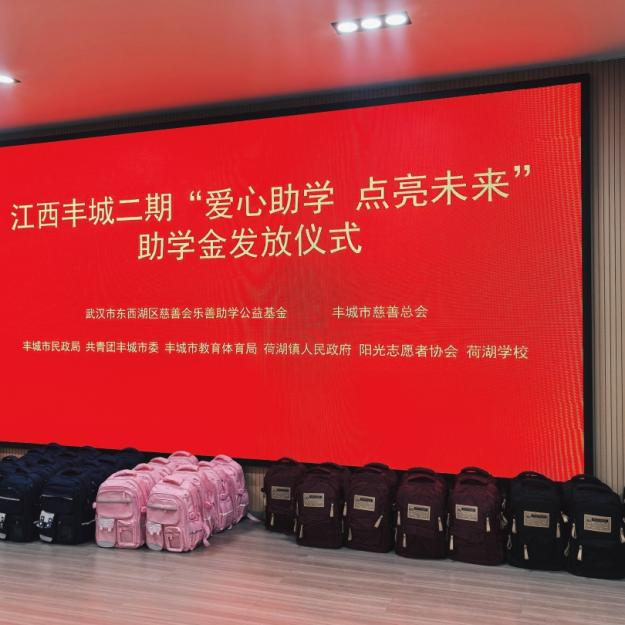 2025年12月13日上午9时30分,“爱心助学·点亮未来”东西湖区慈善会“乐善助学”公益基金江西丰城第二期助学活动在丰城市荷湖乡荷湖中心小学会议礼堂温情举行。本次活动由武汉市东西湖区慈善会“乐善助学”公益基金主办,丰城市民政局、共青团丰城市委、丰城市教育体育局、荷湖镇人民政府、丰城市慈善总会、阳光志愿者协会及荷湖学校协办。